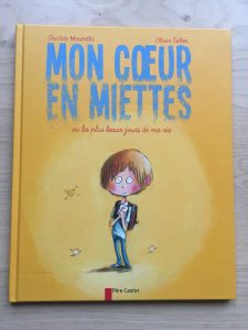 Mon coeur en miettes raconte l’histoire d’un petit garçon qui tombe fou amoureux. « Les filles, elles sont bizarres, je préfère garder une distance de sécurité. Avec Carmen, c’est différent. Depuis qu’elle est arrivée, c’est comme si elle m’avait ensorcelé« . Au fil de l’histoire, Michel tombe très amoureux mais voilà que Carmen doit s’en aller… « J’étais très triste et j’ai réalisé que c’était comme si Carmen avait fait pousser une plante carnivore dans mon ventre, avec des papillons qui volent autour. C’est pour ça que ça chatouille le ventre quand elle me sourit. Mais en même temps, ça me dévore le coeur par petits bouts« .